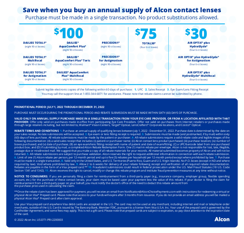 Save Up to $100* on Your Alcon Contact Lens Purchase