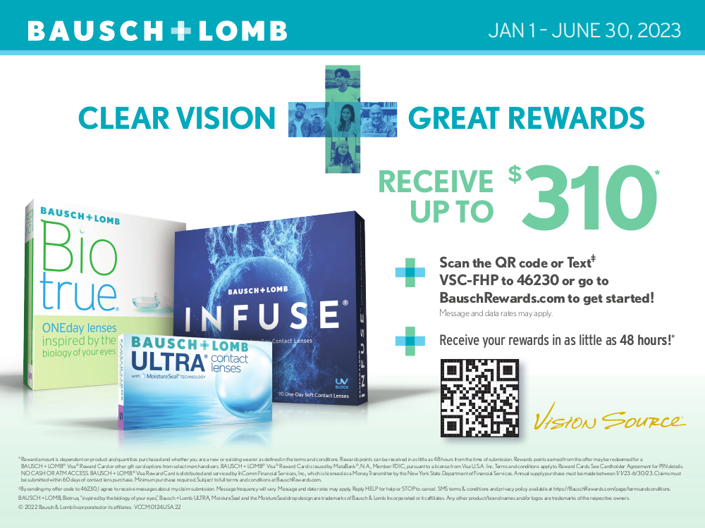 Scan the QR code or Text VSC-FHP to 46230 or go to BauschRewards.com to get started!