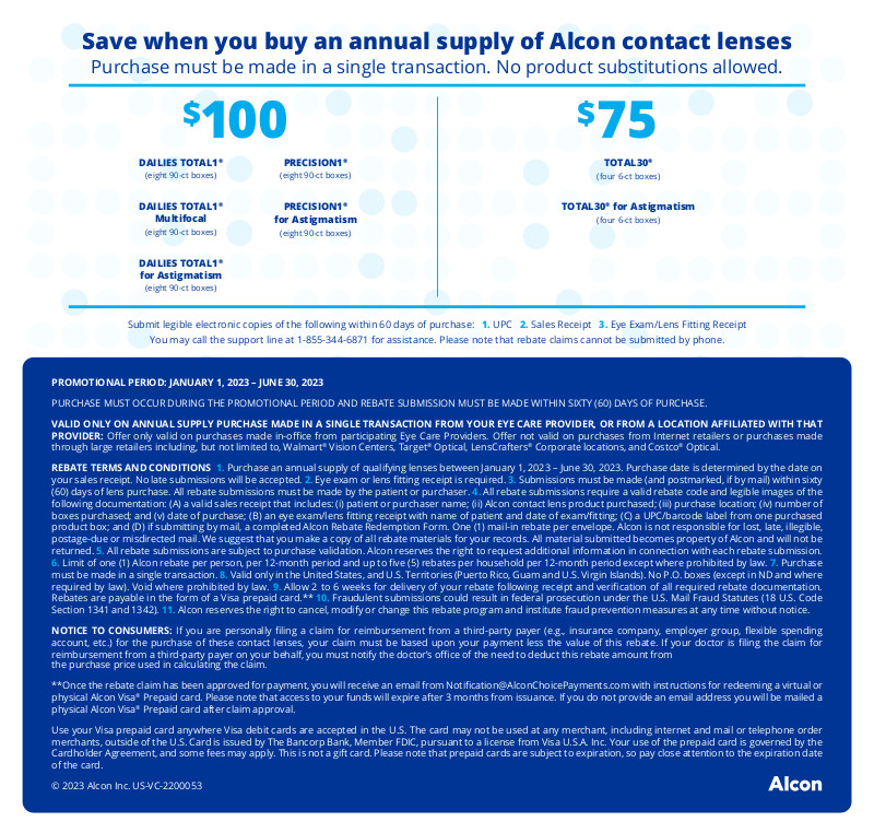 Save up to $100* on Your Alcon Contact Lens Purchase